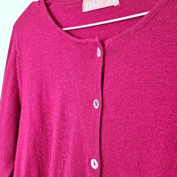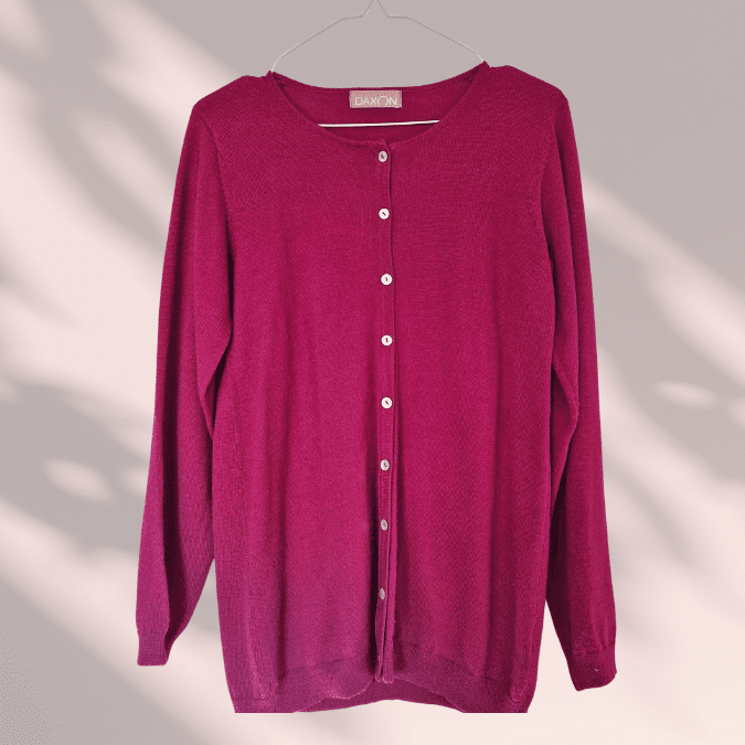Gilet fin 50% laine rose boutons nacrés Daxon
